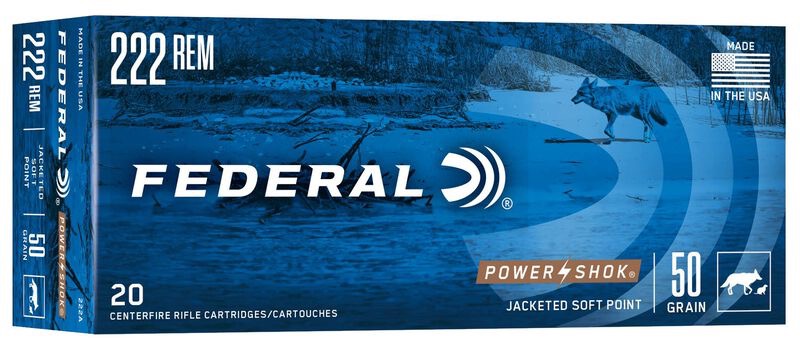 Federal Power-Shok .222 Soft Point ammunition is a dependable, affordable hunting load designed for consistent performance on small game and varmints. Its soft point bullet promotes controlled expansion, making it a practical choice for accuracy and effective terminal performance.